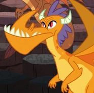 On another occasion, Billy watched as Charcoal engaged Smolder in an arm-wrestling match but was defeated by the smaller Dragon, who then received approval from Ember to return to the School of Friendship early. As a member of Garble's gang along with Fume and Clump, he later mocked Spike when the younger Dragon came to the Dragon Lands with Smolder and Fluttershy. Billy and his friends also diverted lava intended to heat Dragon eggs to a pool for their own enjoyment, only to incur Ember's wrath when the eggs didn't hatch. They were called upon to heat the eggs with their fire breath, and Garble was able to use his poetry to cause them to produce super hot fire and hatch the eggs.