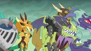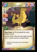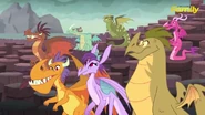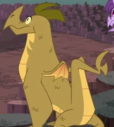 Caldera was also among the dragons recreated as part of a magical simulation by Twilight Sparkle. He was among the teenage/young adult dragons recruited by Ember to use their fire breath to heat Dragons eggs that needed to hatch. Thanks to Garble reciting poetry and making them laugh, they were able to breathe super-hot fire and hatch the eggs. Caldera was later among the numerous Dragons and other creatures who joined in the final battle against the Legion of Doom. Some time later, he was seen in Canterlot among many other creatures who attended Twilight’s coronation as Queen of Equestria.