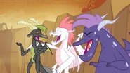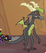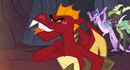 Later, when Dragon Lord Torch called for a Gauntlet of Fire to determine his successor, Charcoal was among the dragons who answered the summons, but was not actually seen to compete. Twilight Sparkle later included Charcoal among the various Dragons recreated for a simulation in which she imagined sending her student Starlight Glimmer to the Dragon Lands as an ambassador. He was also among the teen Dragons who were gathered for a Gorge-surfing competition when Spike and Rainbow Dash arrived in the Dragon Lands in search of Flash Magnus' shield, Netitus. On another occasion, he engaged Smolder in an arm-wrestling match but was defeated by the smaller Dragon, who then received approval from Ember to return to the School of Friendship early.