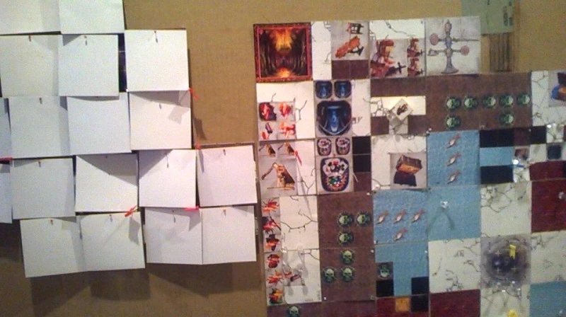 Each player Dark Lord starts with 1 Imp in her /his Throne Room (to dig and build) and 1 Dungeon Portal Room in hand (to attract Creatures). The map lay out develops from a neutral central Black Well all the while each Throne Room expands up to reaching the borders of others and the Black Well, only stable connection between the Sunland level and the underground.