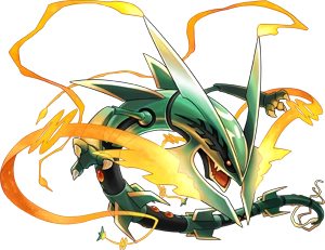 Rayquaza also has a mega evolution and is said to be the first one to have acquired one, how it obtained it varying between sources. It's connection to its mega evolution is unique in that it does not need a mega stone to evolve like other Pokemon and instead only needs to know the move Dragon Ascent to achieve mega evolution.[2]