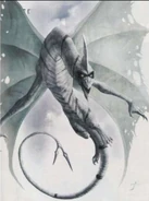 The Time Dragon is variant of Epic Dragon, being overall the most powerful dragon in Dungeons & Dragons short of deities. At their peak, the Time Dragon shows mastery over controlling the timestream itself, being able to stop time at will and can travel forwards or backwards at time.[1]