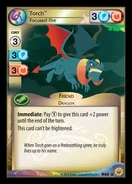 Torch is a character in My Little Pony: Friendship is Magic who first appeared in "Gauntlet of Fire" as the central conflict if the plot. His retirement meant certain doom if the wrong dragon won the title of Dragon Lord. Torch appeared in episodes after Gauntlet of Fire, but never quite became a major recurring figure.
